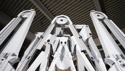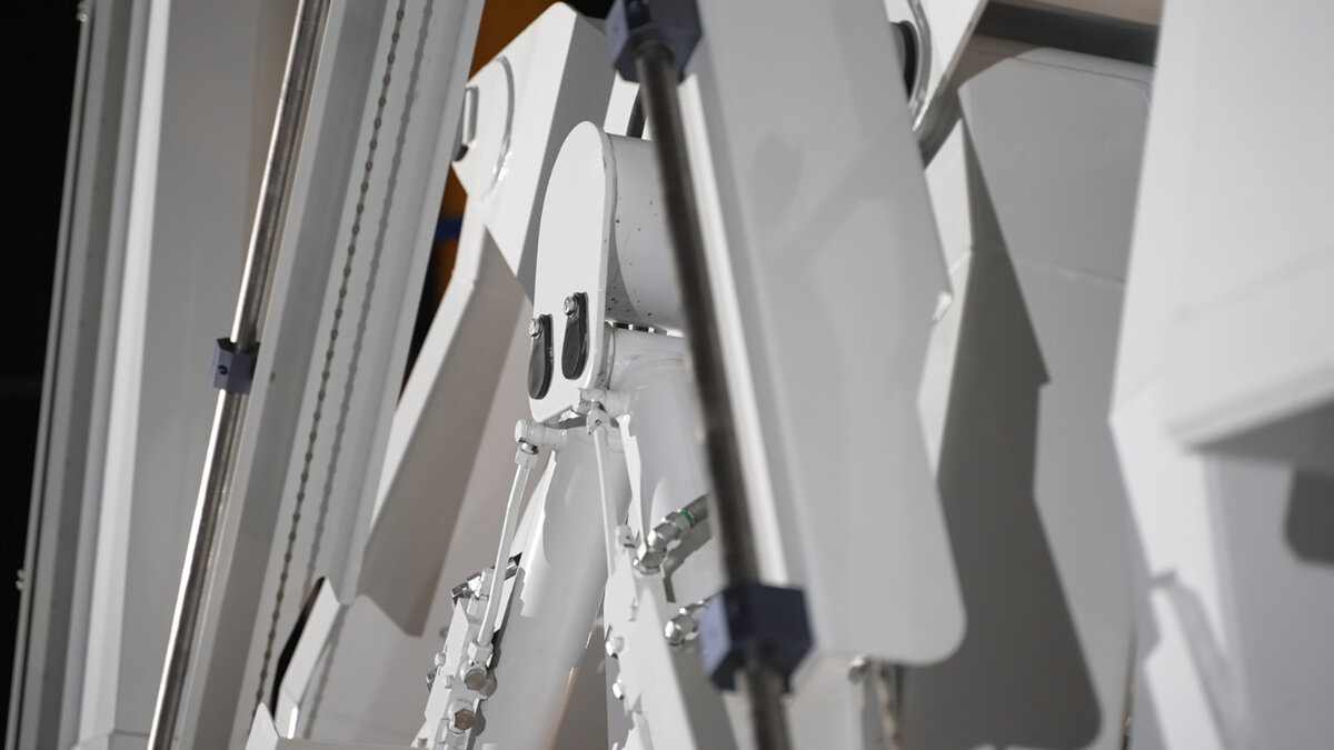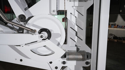 Das Sägeaggregat lässt sich in allen Freiheitsgraden schwenken und stufenlos auf die erforderliche Schnittbreite einstellen. Dadurch werden ein kompaktes Transportmaß von unter 3 m sowie eine Schnittkapazität von bis zu 5,0 m x 3,4 m erreicht.