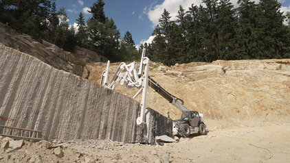 Die vollhydraulische Ausführung des Sägeaggregats sorgt für eine präzise Steuer- und Regelbarkeit bei gleichzeitig hoher Robustheit im anspruchsvollen Einsatzumfeld. Ergänzt wird dies durch eine speziell entwickelte Steuerung des Sägeprozesses, die deutlich höhere Vorschubgeschwindigkeiten ermöglicht. So lässt sich die MDS 5034 effizient in bestehende Abläufe im Steinbruch integrieren, ohne Kompromisse bei Schnittqualität und Prozessstabilität einzugehen.